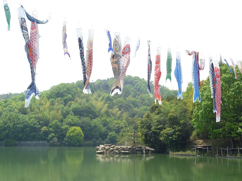 緑の自然によく溶け込んでいる丸山公園の鯉のぼり。