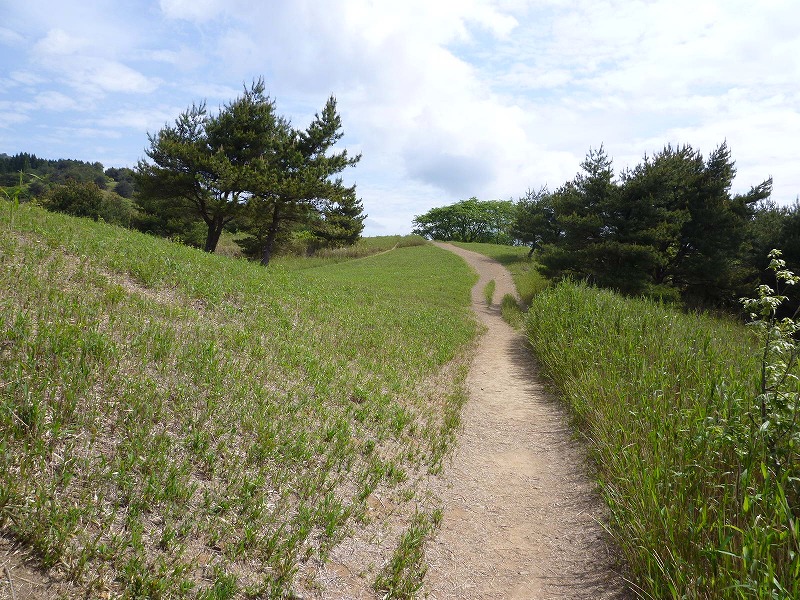 東お多福山はなだらかな草原状の山で、芦屋住宅や大阪市街地が見え↓、六甲連山が見える↑。