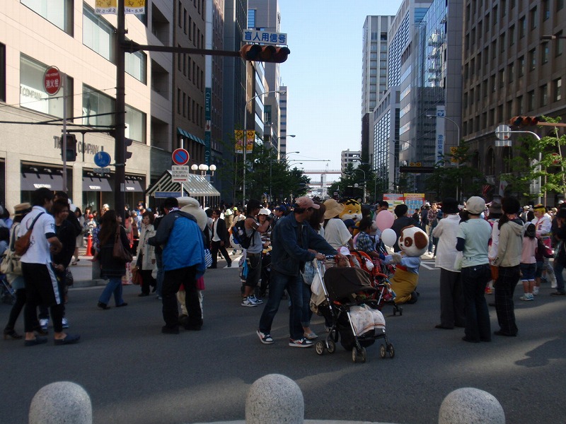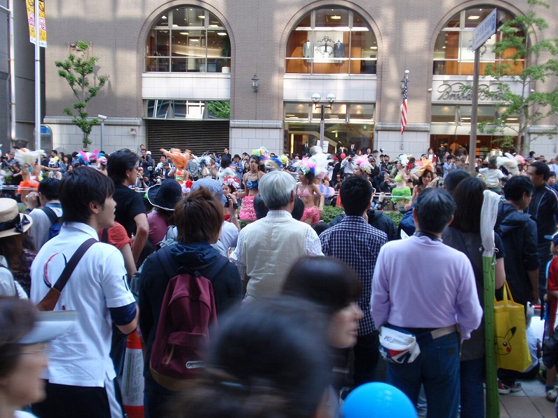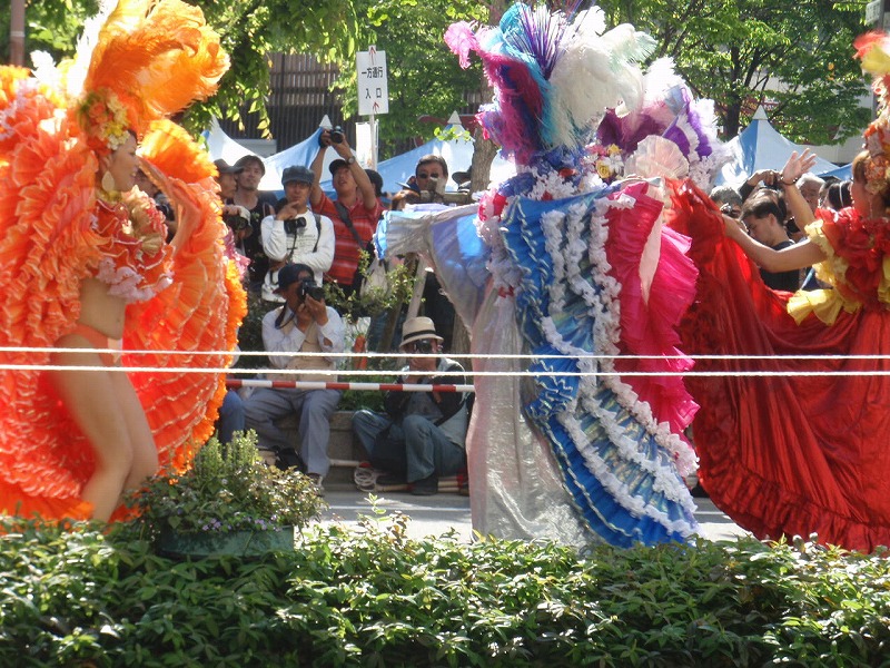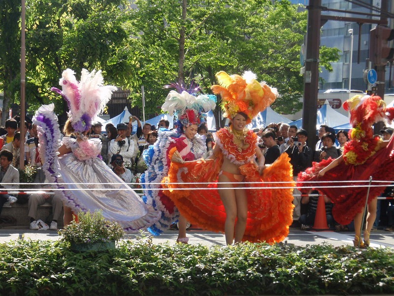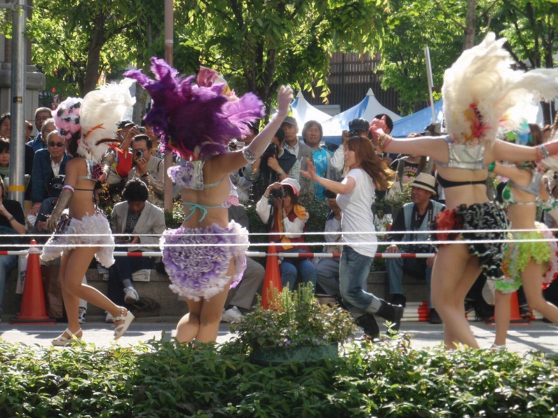 この京橋の通りでは午後0:00〜午後4:30までサンバが道路中央で踊っている。