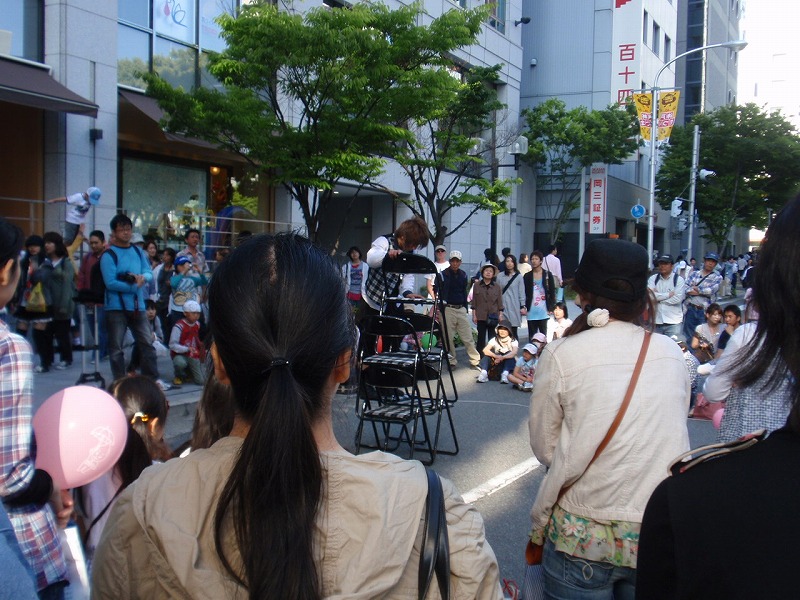 この写真は三宮駅へ行く途中の大道芸、曲芸をしていた。