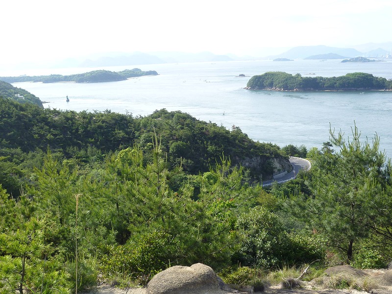 手前・ビジターセンター、下にあるレストハウスは只今改装中(秋に再オープン)。釜島、五色台。