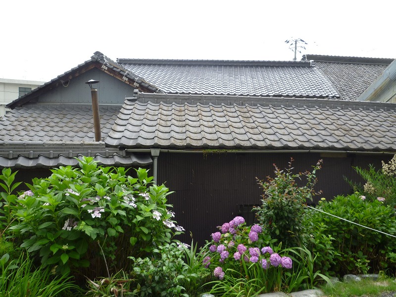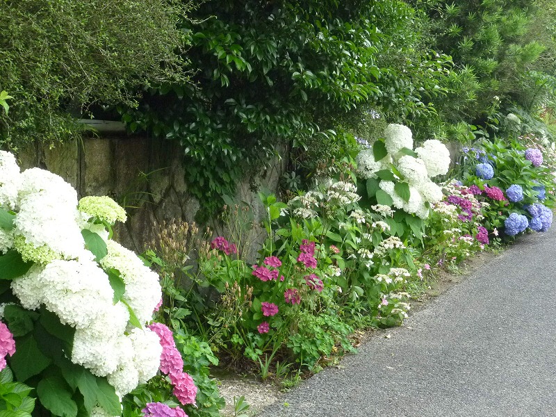 線路道にも町にも、このようにところどころ紫陽花や立葵などが咲いていた。