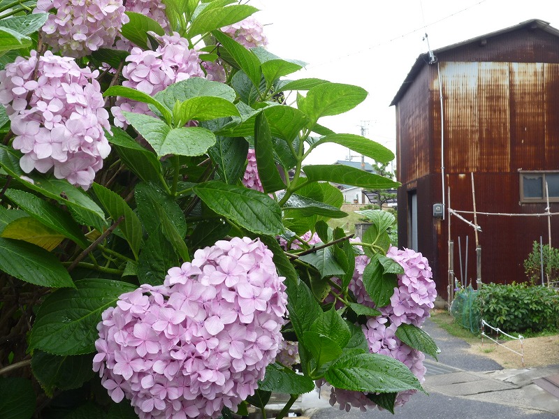 ところどころ庭に咲くアジサイの花↑↓。