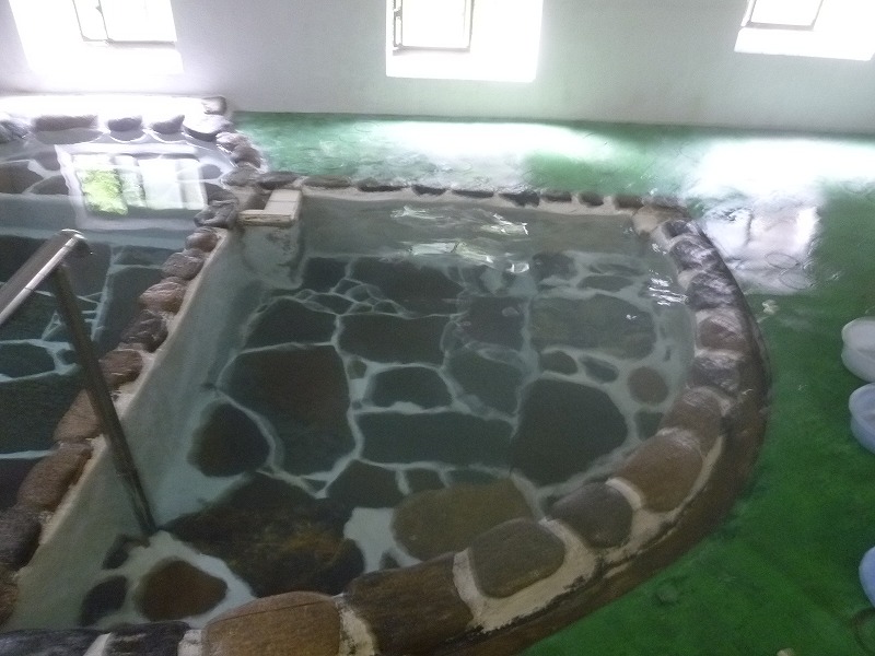 小森温泉は↓、浴槽が左右二つで左は熱め、右は普通。