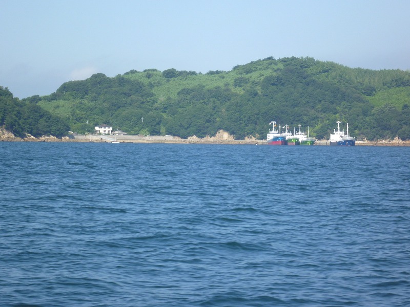 大飛島の北浦港には4隻の内海貨物船が系船しているのが見える。
