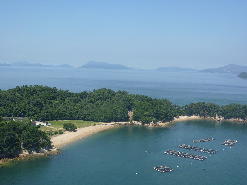 西。下に沙弥島。彼方に高見島・佐柳島など。笠岡諸島は佐柳や広島に重なり見ることは不可能。
