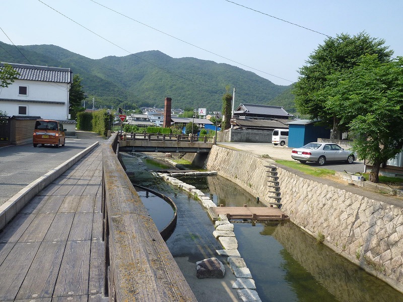 この場所は不老川に架かる「伊部橋」から西を見たもの。道は旧山陽道。
