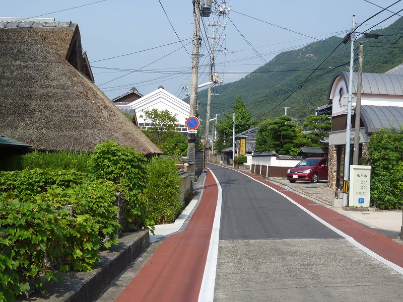 旧山陽道を東に行く。三叉路で正面にJR伊部駅兼備前焼会館が見えるとこ。