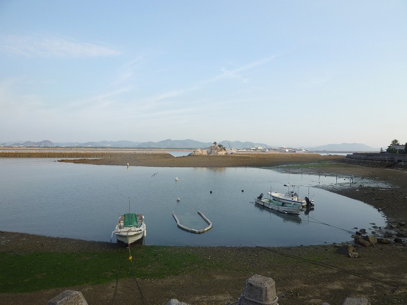 おっ、今朝は見崎の地先に浮かぶ小島が陸つづきになっている。