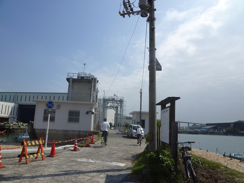 これより波止浜の水門を渡る。
