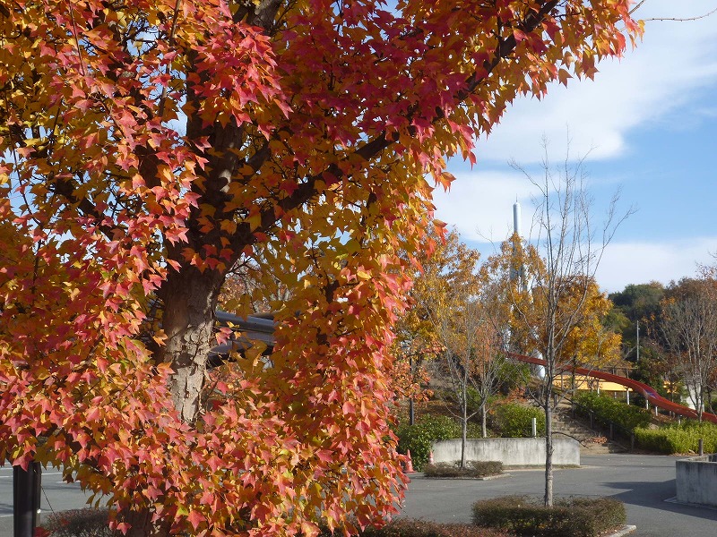 古代の丘スポーツ公園駐車場のケヤキ。