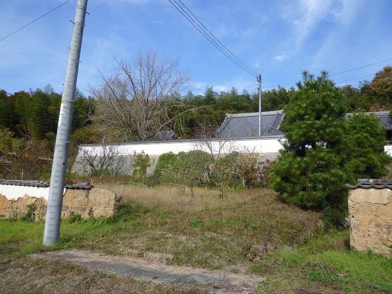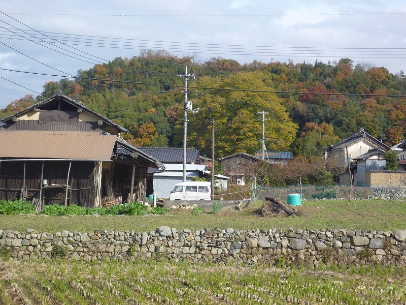 甲弩岡田池の前付近から見る小北中学・北川小学校。右は小田の観音山。