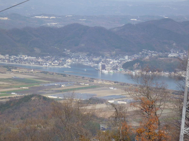 栂の丸から見る笠岡湾干拓地。