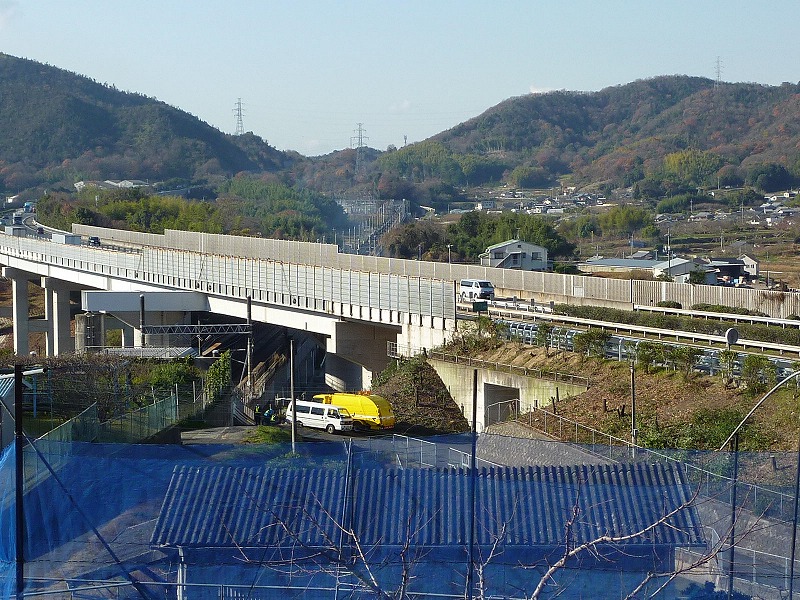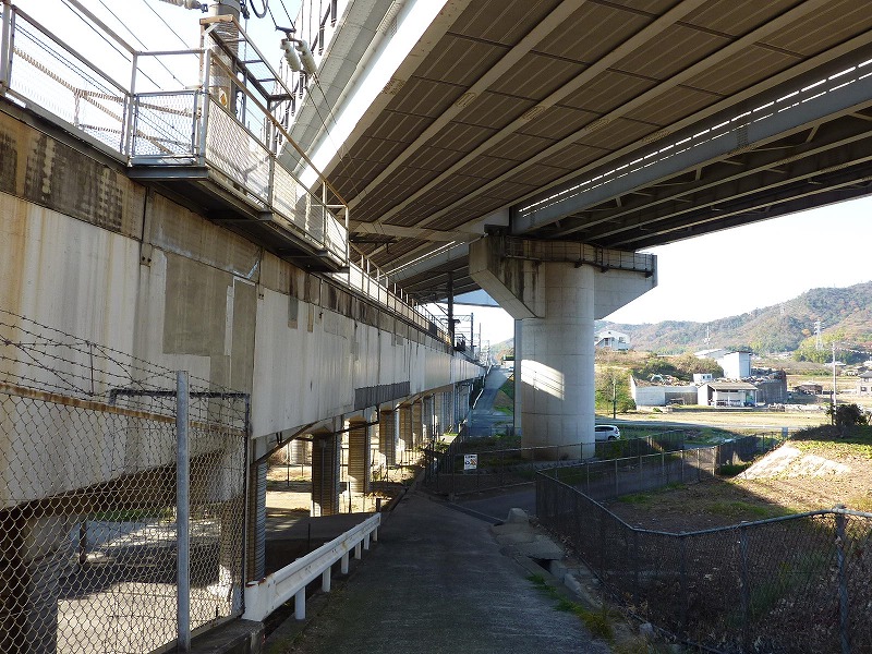 山陽道は虚空蔵山系から下るような場所で、橋げたが高い。