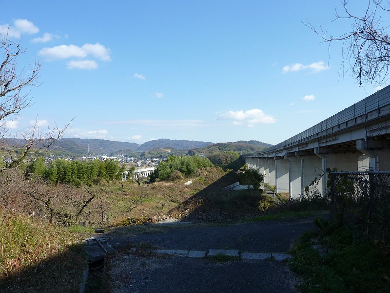正面が遥照山で、右に新幹線と山陽道の高架が見える。