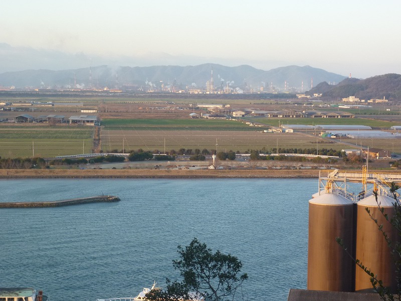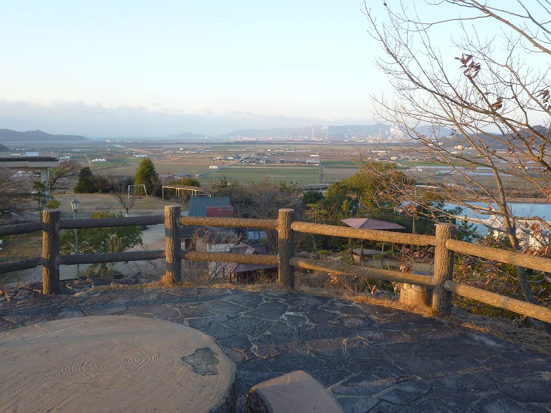 古城山の山頂から見る元旦の笠岡湾干拓地。
