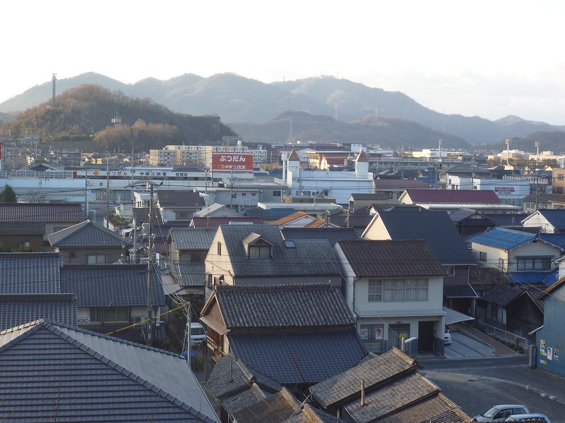 徳民於賀神社から見る大磯の家並み、そして神島。