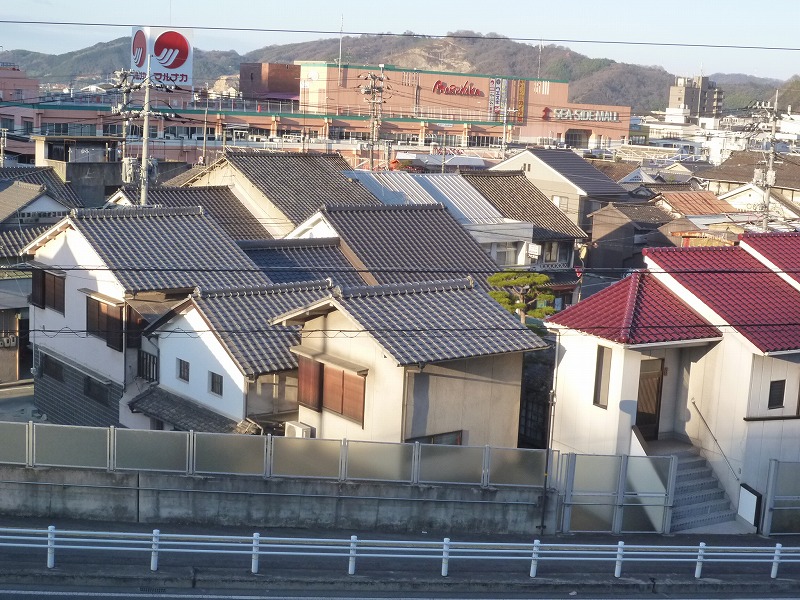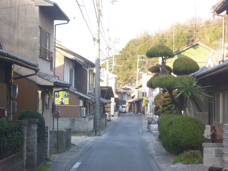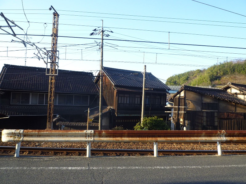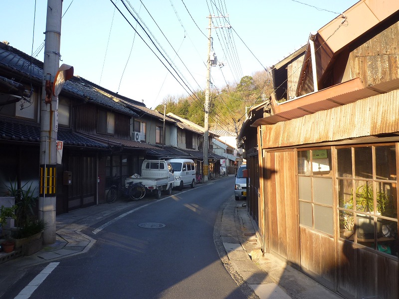 鴨方往来の風情がいまだに残る大磯の家並み。