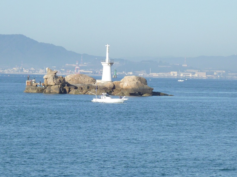 高島と白石島の間の海はいっつも釣り船がいる。年中何か釣れる海。