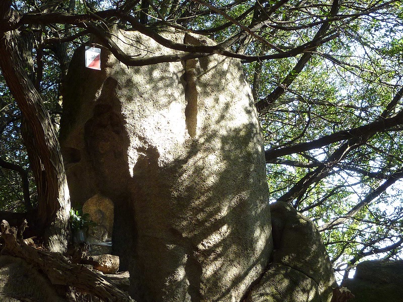 島の上に岩がのっているのが「小山」、 潮が引けば陸繋島になる。