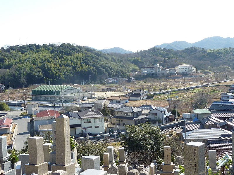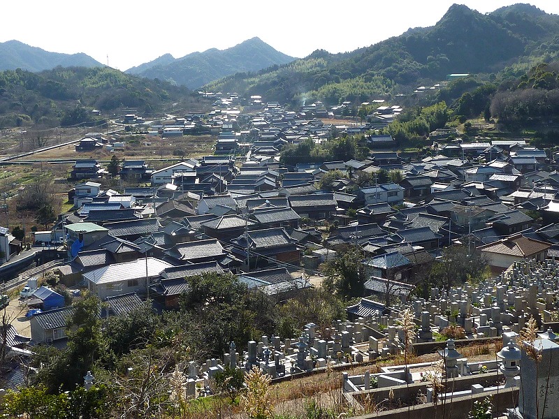 これから墓地に登る。海の向こう側は福山市箕島や箕沖。