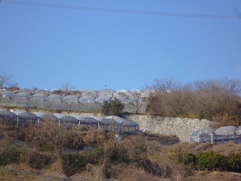 山陽道の暗渠を通り抜けると青空とビニールハウスが目に飛び込んできた。