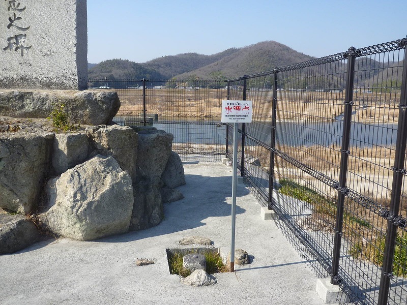 吉井川東岸堤防のうえにある「明治天皇巡幸記念碑」。