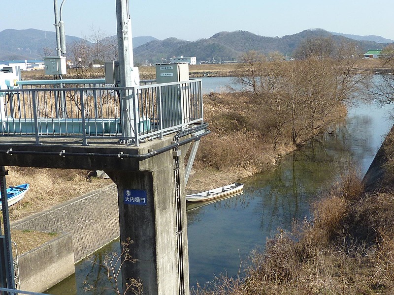 いっぽう現在の倉安川の取水場「大内樋門」。元の場所から50mほど上流側にある。