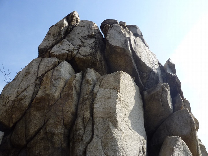 向こうに言える巨石。
