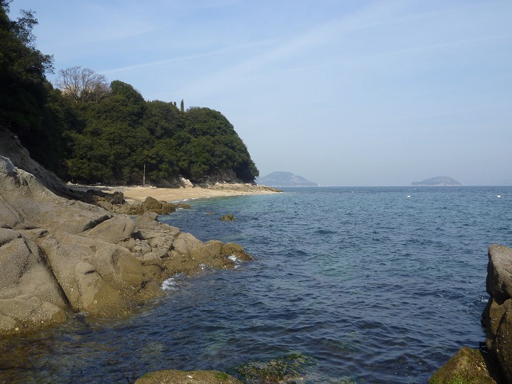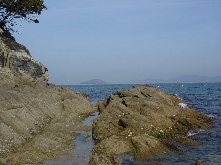 霞みがかって海の彼方の島影が見えない。