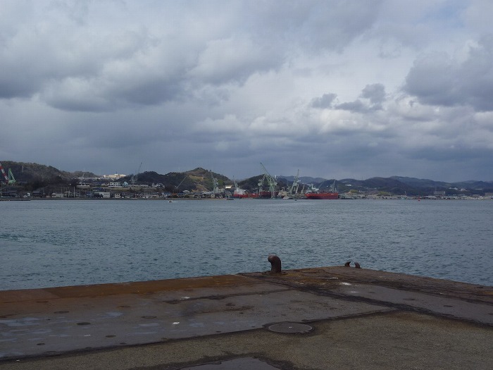 戸崎桟橋から本土側を見る、尾道市山波町の尾道造船。