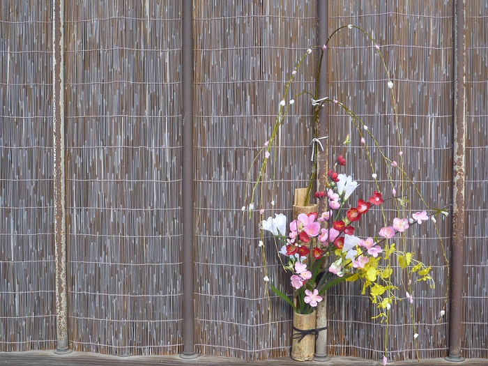 軒先に竹に花の風流な民家もある。もっとも、花は造花。近年は花を飾る場合、生花よりも造花が多いな。