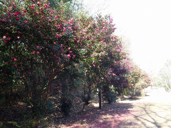 そのゲートボール場には椿が満開で、一部落下をはじめていた。
