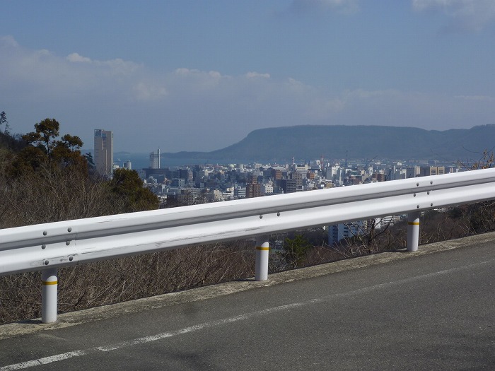 高松市や小豆島までの眺めがある道。
