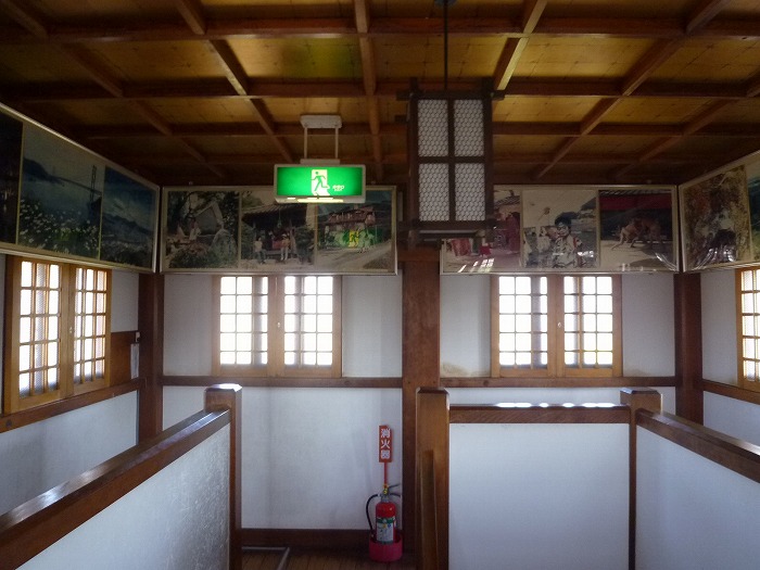 窓の上には因島名所などの写真が掲示されているが、肝心の窓からは金網のため