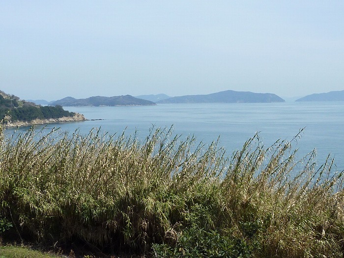 遠く霞んで因島や弓削島が見えてきた。