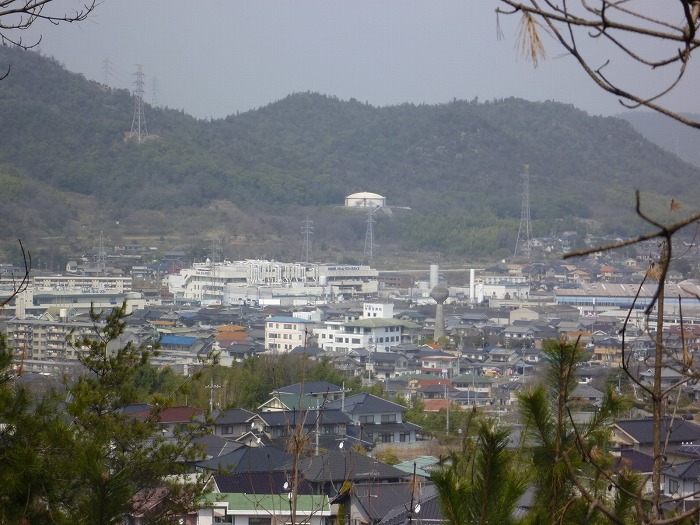 墓地から見る絵師方面。正面はロームワコーの工場。