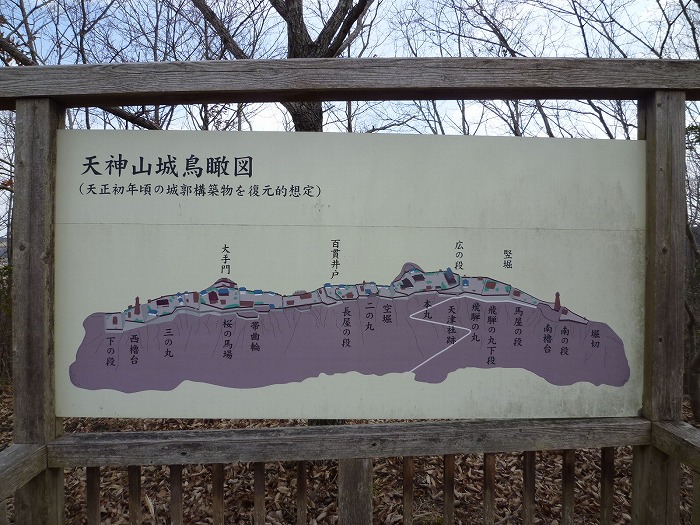 こういう郭が連なっている山城のことを「連郭式山城」というそうだ。