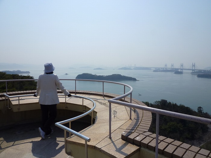いちばん有名な碑「島一つ・・・」の場所から見る瀬戸大橋。