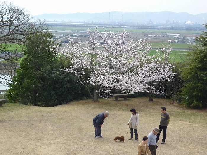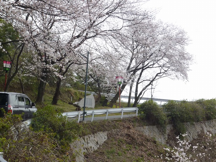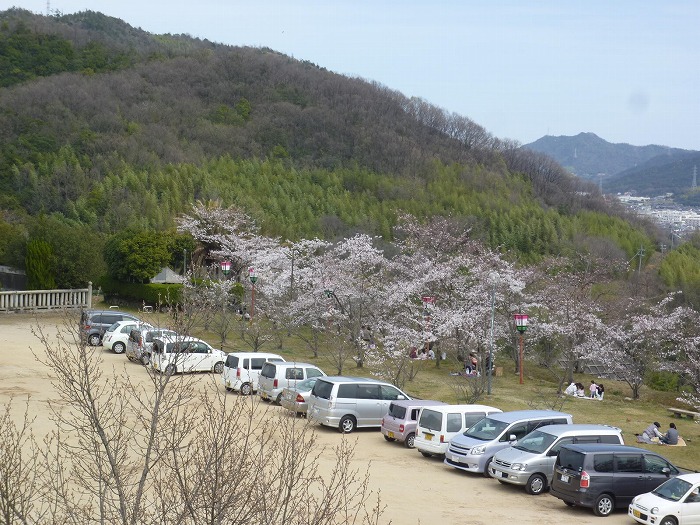 すると、平日だというのに古城山山頂には多くの花見の車があった。