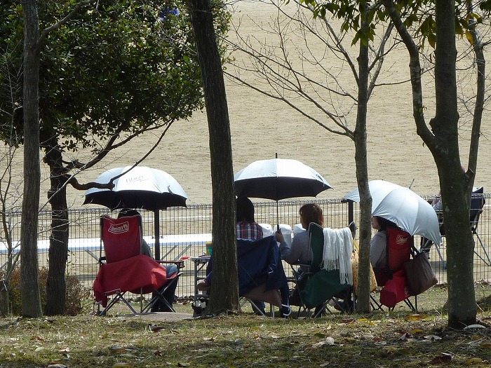 グランドの外では次の試合の選手が待機中だった。