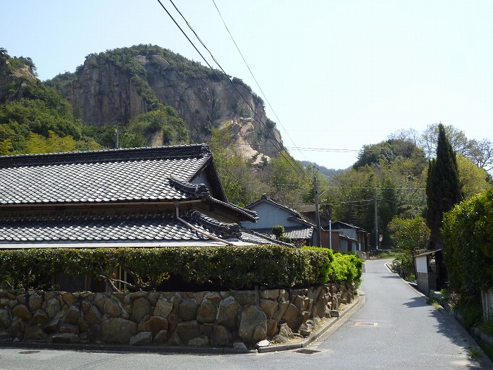 石切りの山が民家に迫るような千ノ浜。