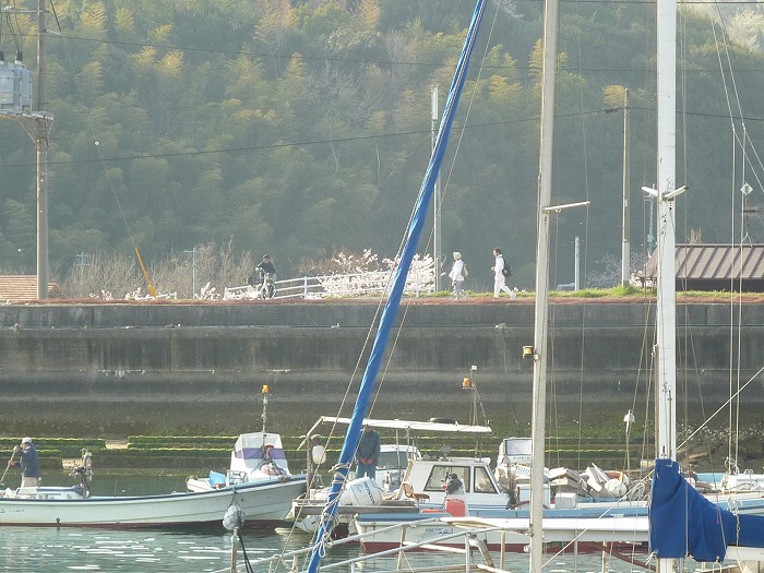 逆にフェリーの高い場所から見ればいい、帰りの船はフェリーに乗って神島の山桜を見てみよう。