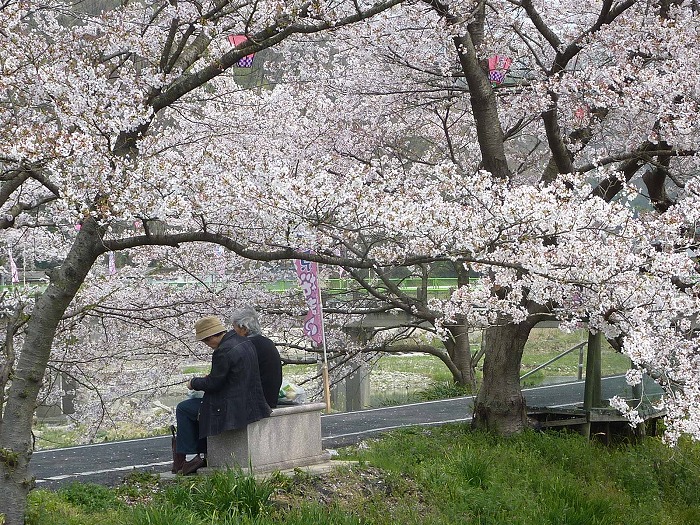 古くからの桜と植え替えられた桜がいいように混ざり、桜並木は2kmつづく。