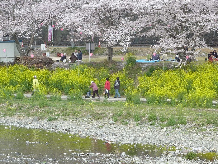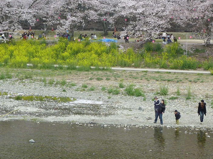 対岸・北山町の公園は、桜と菜の花の両方が満開。