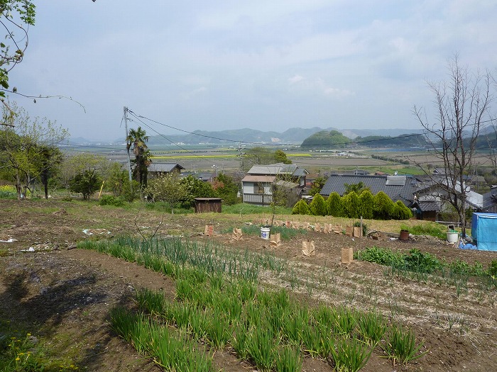 あっ、菜の花畑が見えた。その向こうに笠岡ふれあい空港も見える。