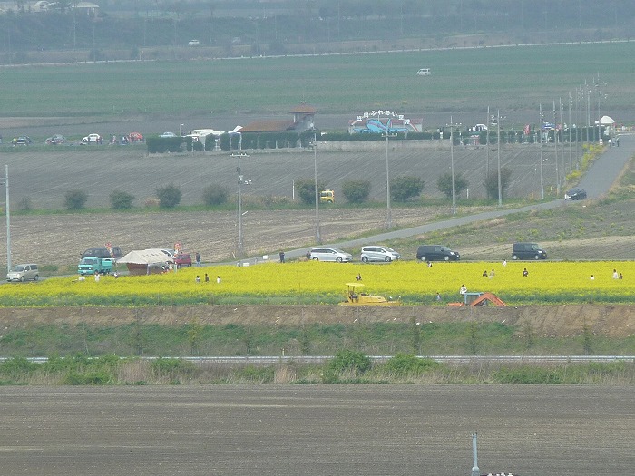 今年の菜の花畑が道の駅の隣、いうのがよくわかった。