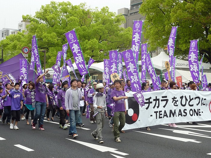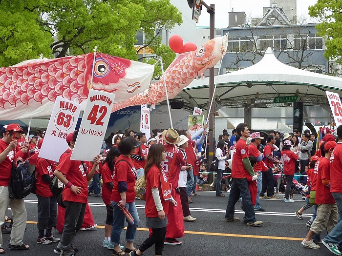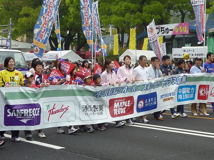 ただサンフレが好き、カープのファンいうだけで、しかも当日参加で大観衆の前を歩ける人は幸せだ。