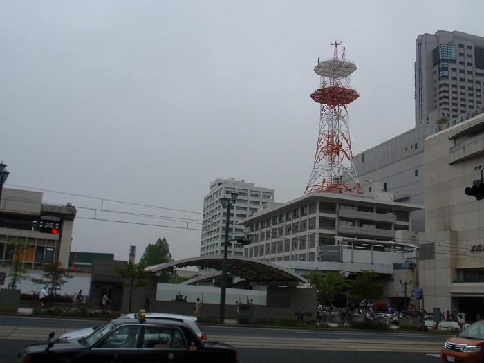 紙屋町交差点。右のビルが工事中の広電ビル。進捗状況はといえば、