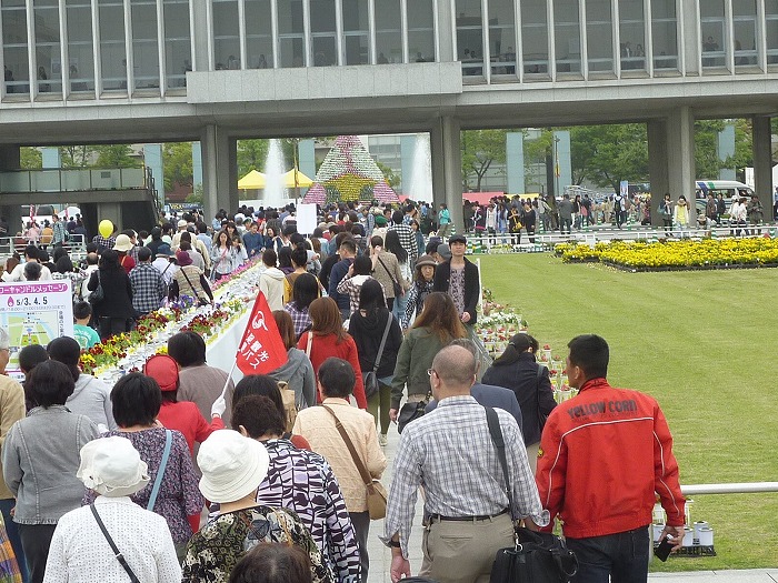 慰霊碑と原爆資料館の間には中央にフラワーキャンドル。